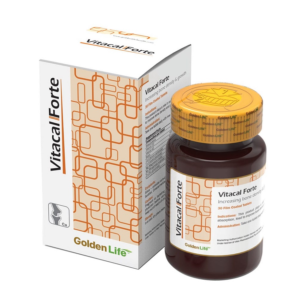ویتاکل فورت گلدن لایف 30 قرص Vitacal Forte GoldenLife 30tab با دارا بودن کلسیم و ویتامین D3، منیزیم، زینک و سایر املاح معدنی مورد نیاز برای استخوان سازیی به حفظ سلامت و افزایش استحکام استخوان‌ و دندانها و جلوگیری از پوکی آنها کمک می کند.